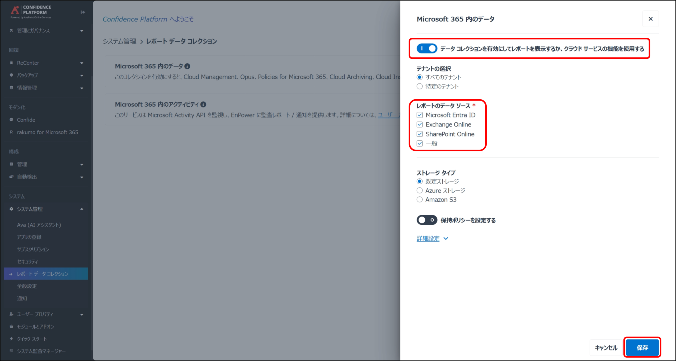 AvePoint Online Service レポートデータコレクション有効化