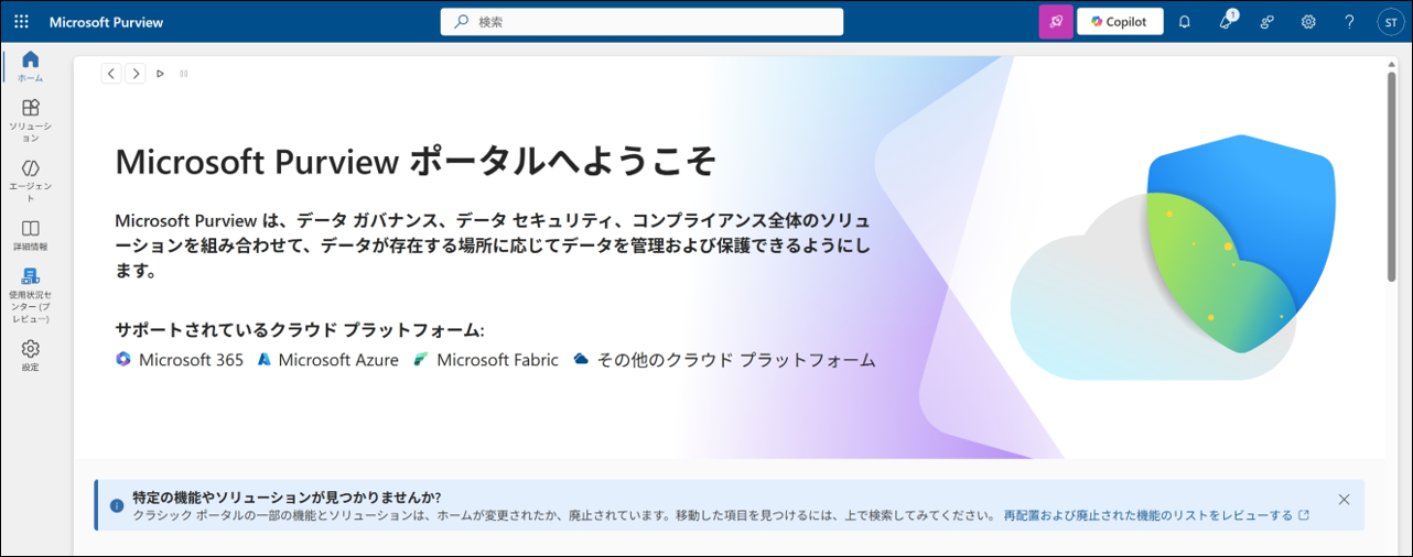 1.Microsoft Purview ポータル へ アプリ登録用のアカウント でアクセスします。