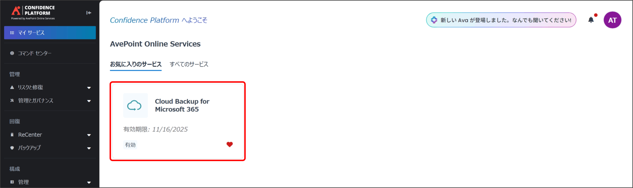 2.AOSマイサービス より、[Cloud Backup for Microsoft 365] をクリックします。