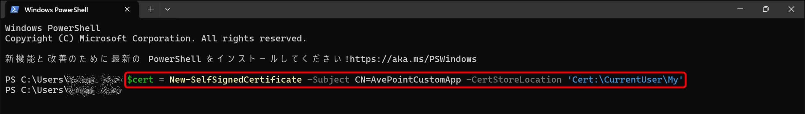 こちらの手順はPowerShell コマンドを利用したセルフ証明書の作成手順になります。それ以外の証明書の生成方法に関しては、ユーザーガイドを参照ください。証明書の作成