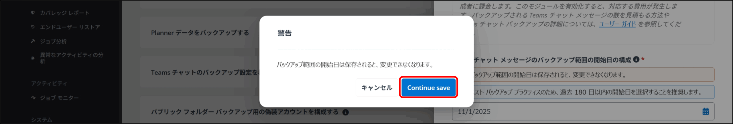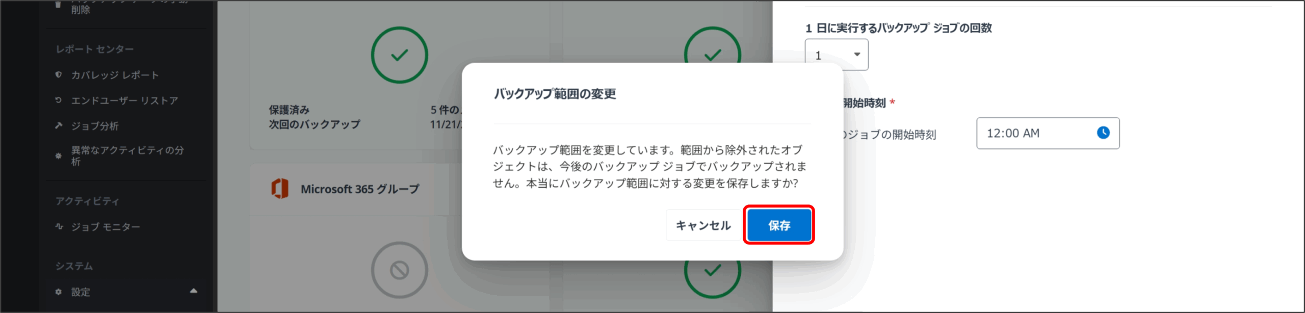 3.バックアップ範囲の変更 ポップアップが表示されるので、[保存] をクリックします。
