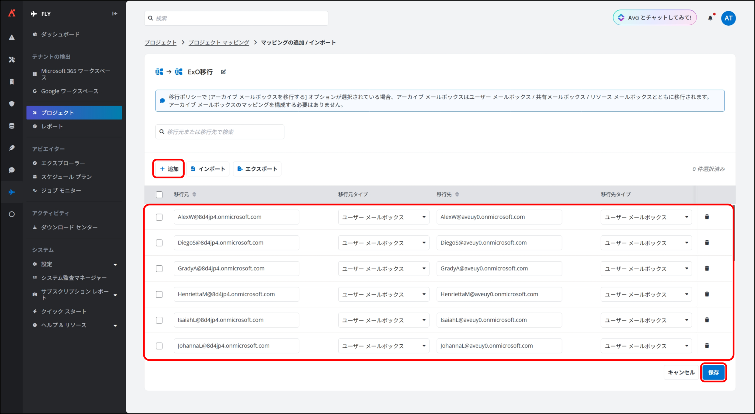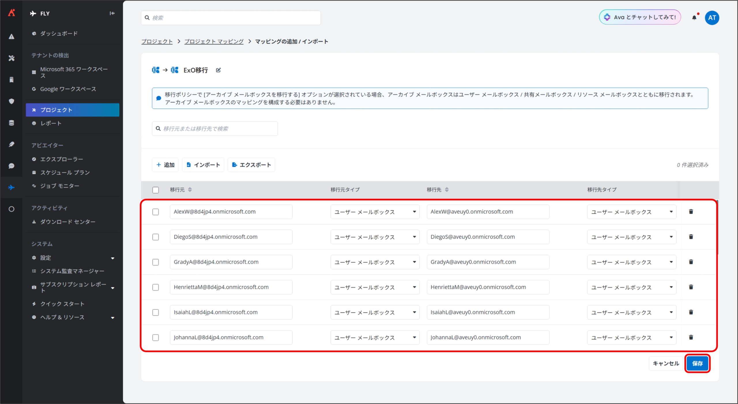 3. 本手順 1 ~ 2 を繰り返し、移行に必要なマッピングを全て作成して [保存] をクリックします。
