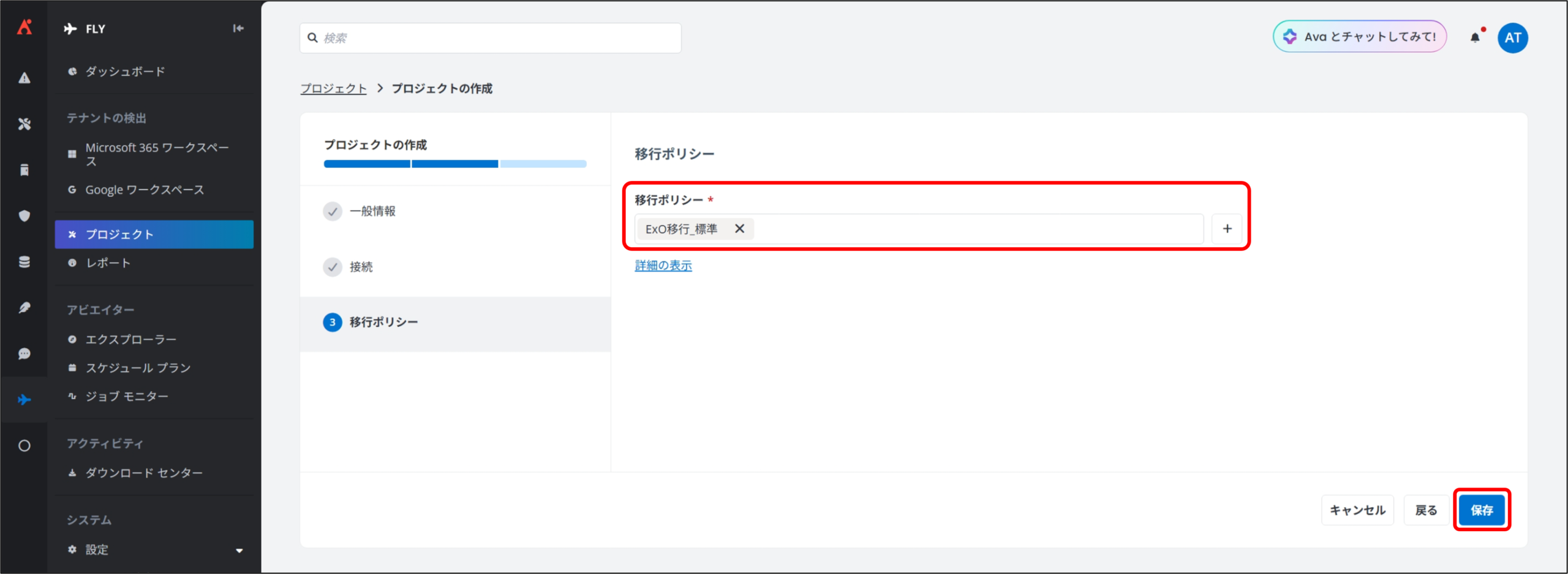 続けて、必要に応じて「② 移行ポリシーの作成」を実施します。