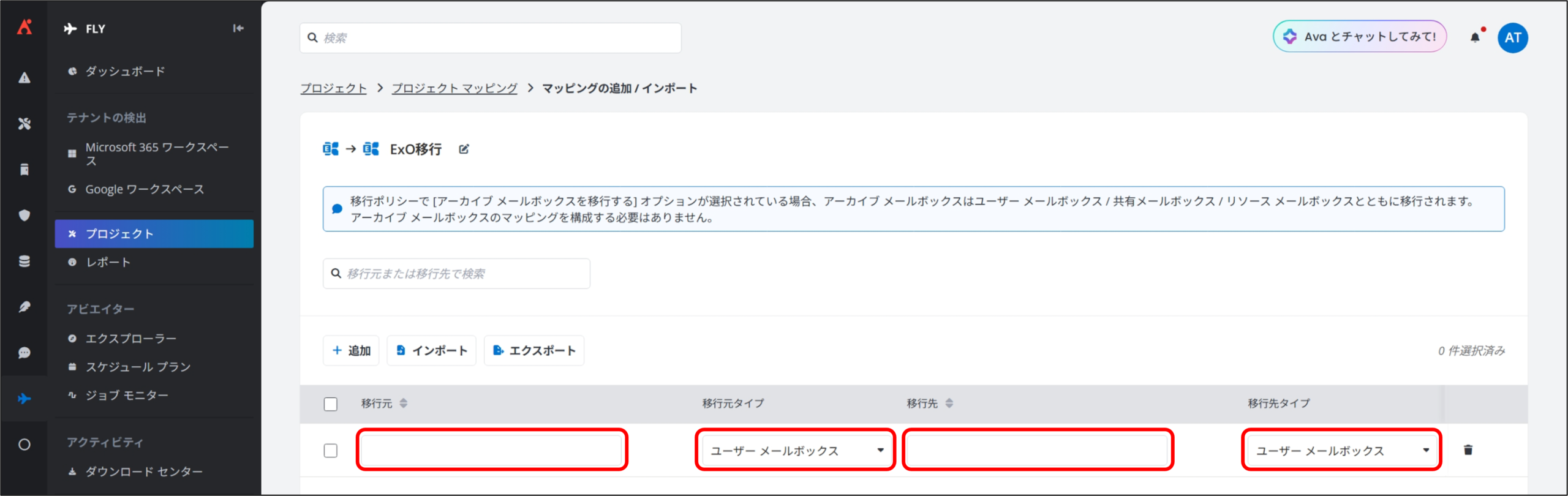 - アーカイブ メールボックスを移行する