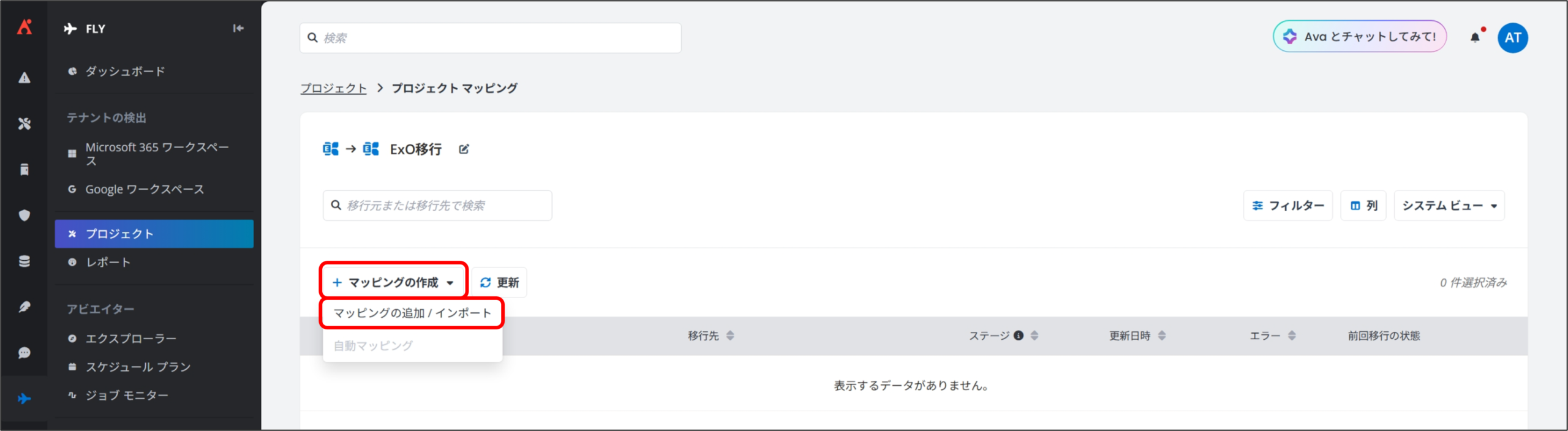Fly では、移行を実行する前に、「マッピングの事前分析」を行うことができます。