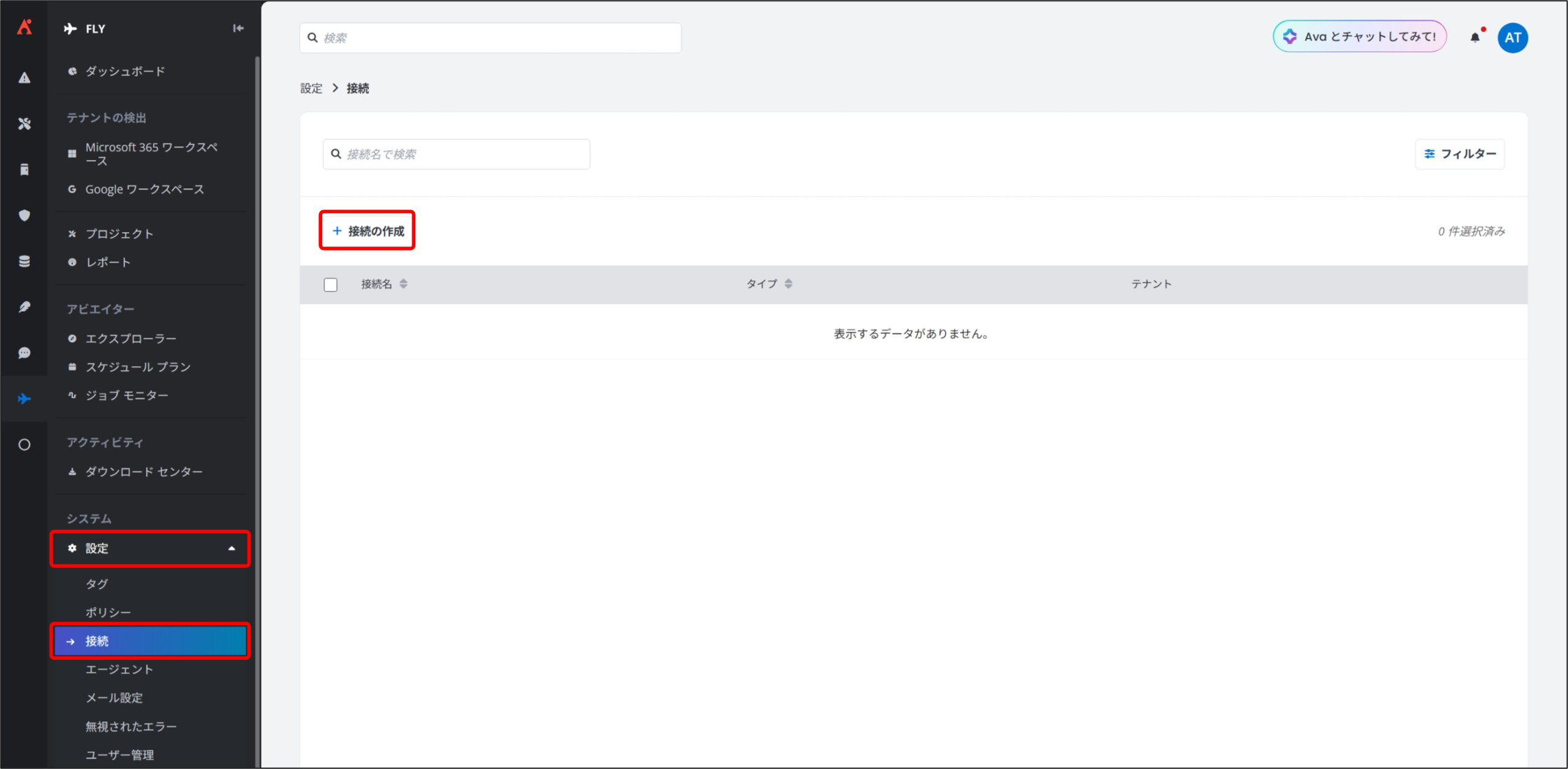 接続を作成することで、Fly が各テナントにアクセスするための認証情報や権限情報を登録することができます。