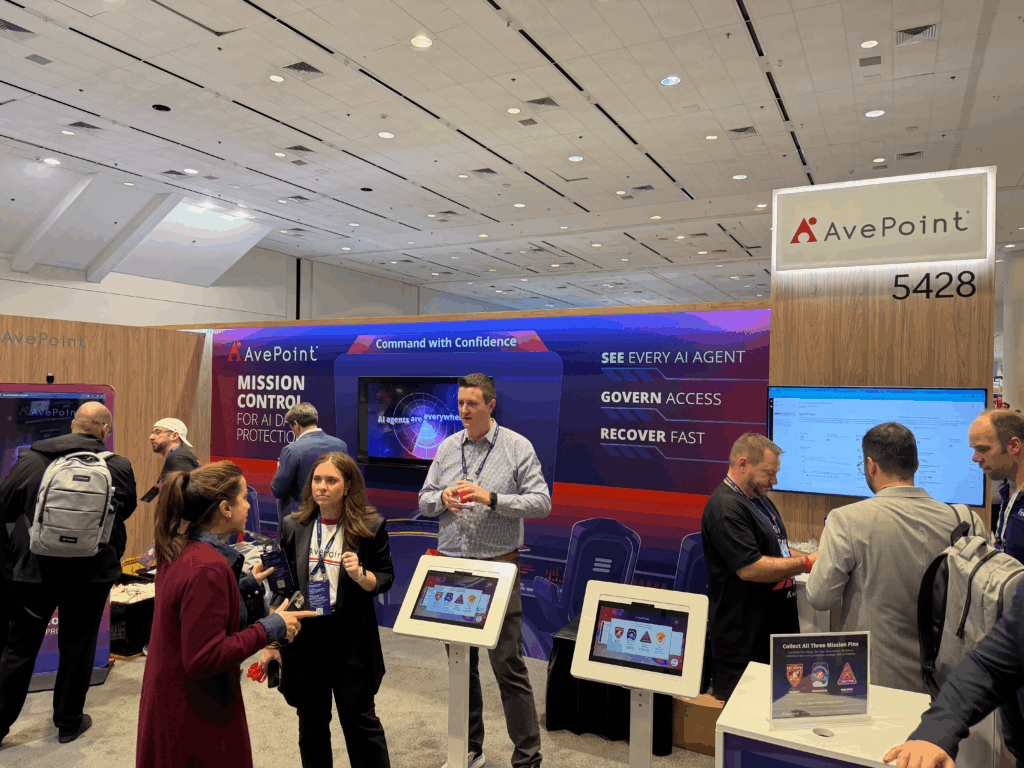 また、会場には多数のパートナー企業が集まるエキスポエリアも設置されており、弊社 AvePoint の米国法人も例年通りブースを出展しています。Teams の管理や SharePoint のバックアップといった従来からの製品に加え、AI Agent の管理のための新製品を会場でお披露目。