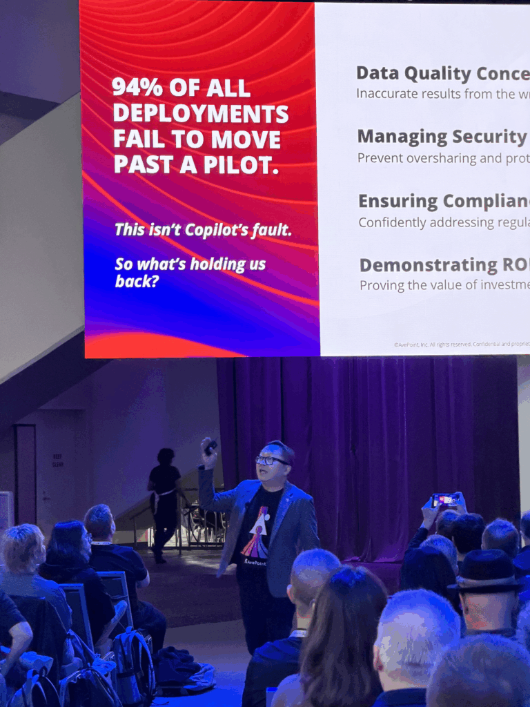 しかし、多くの企業ではそれが検証段階段階を超えることができていません。現地レポートの第一弾でも触れたように、今年は Microsoft 自身も「AIの利用が思ったように進んでいない現実」を認めています。