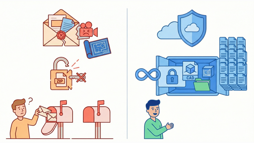 ファイル数・送信回数ともに実質無制限で安全に送信できます。