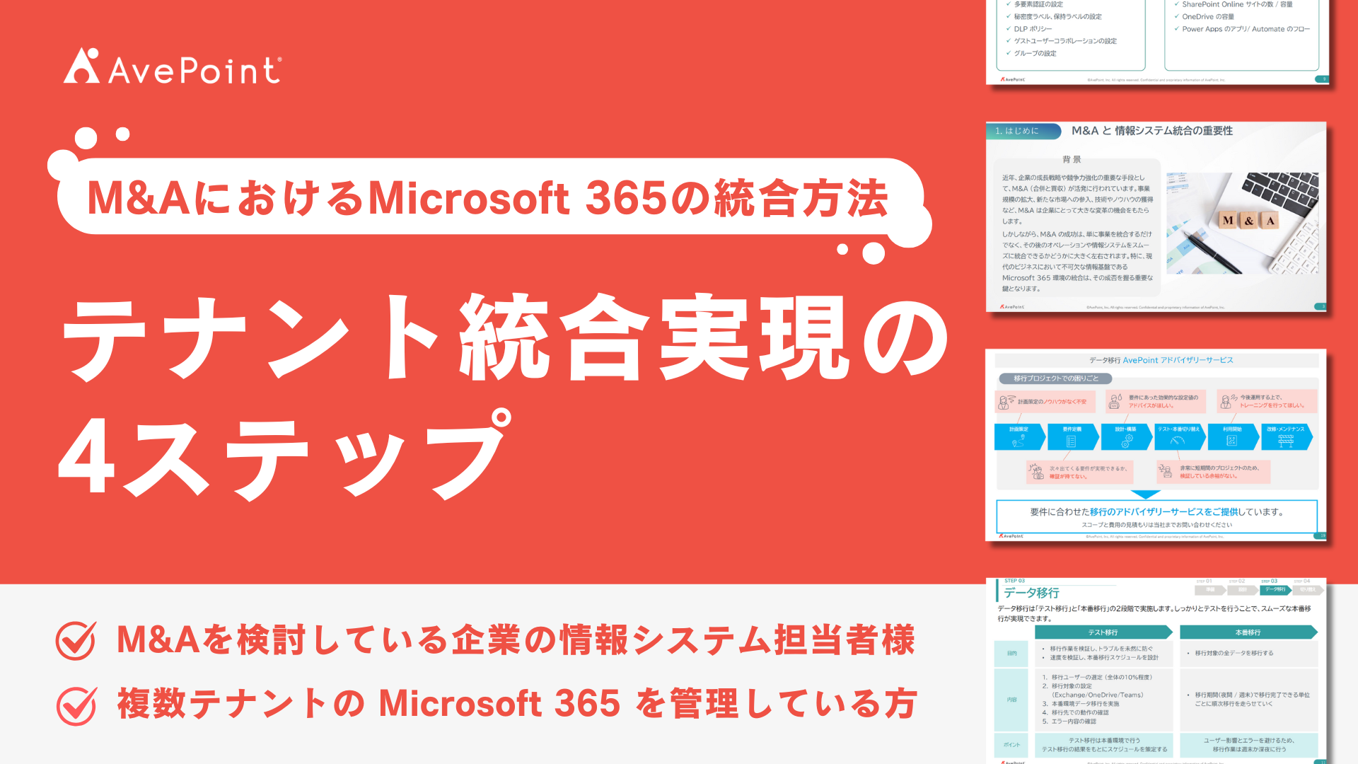 SharePointを含めたMicrosoft365の運用管理業務を効率的に進めたい方には、AvePoint Cloud Governanceがおすすめです。AvePoint Cloud Governanceを活用することで、運用管理業務を自動化でき、運用管理の課題解決につながります。