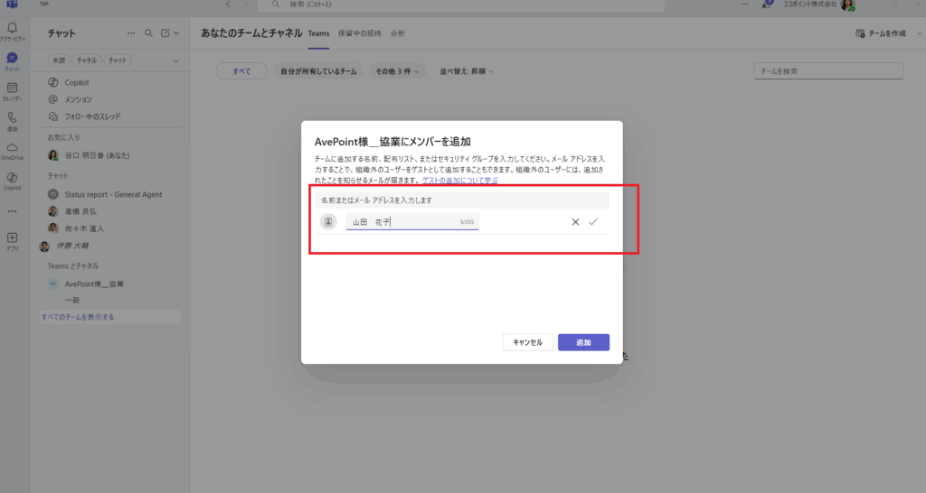 この場合、チームの所有者に招待依頼をするだけではなく、会議の主催者にも承認の依頼を行いましょう。