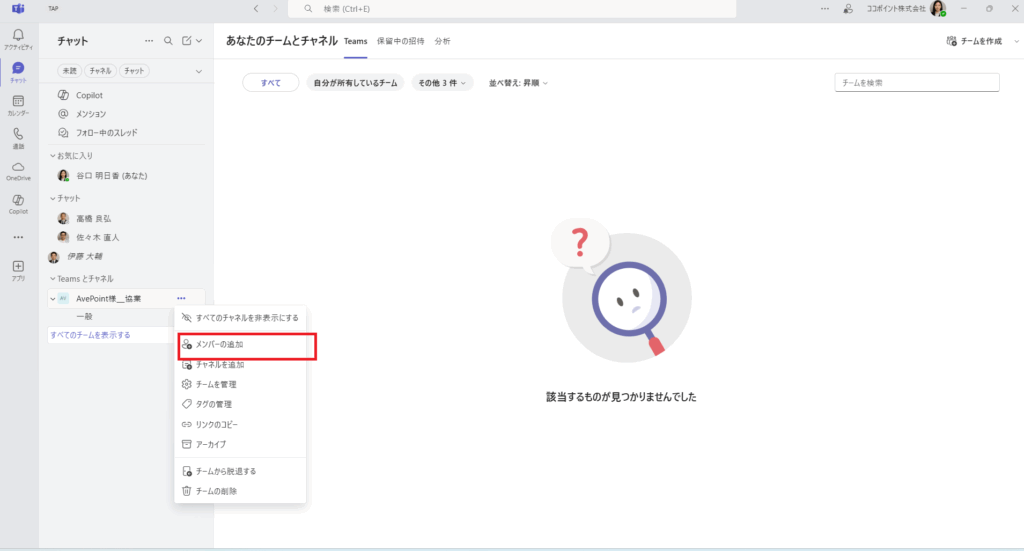 Teams にゲストとして招待されたユーザーは、利用できる機能が制限されています。