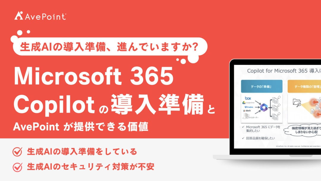 アーカイブ視聴登録 Microsoft 365 Copilot の導入準備、AvePoint が提供できる価値 テーマ Microsoft 365 Copilot 対象者 Microsoft 365 を徹底的に使いつくしたい