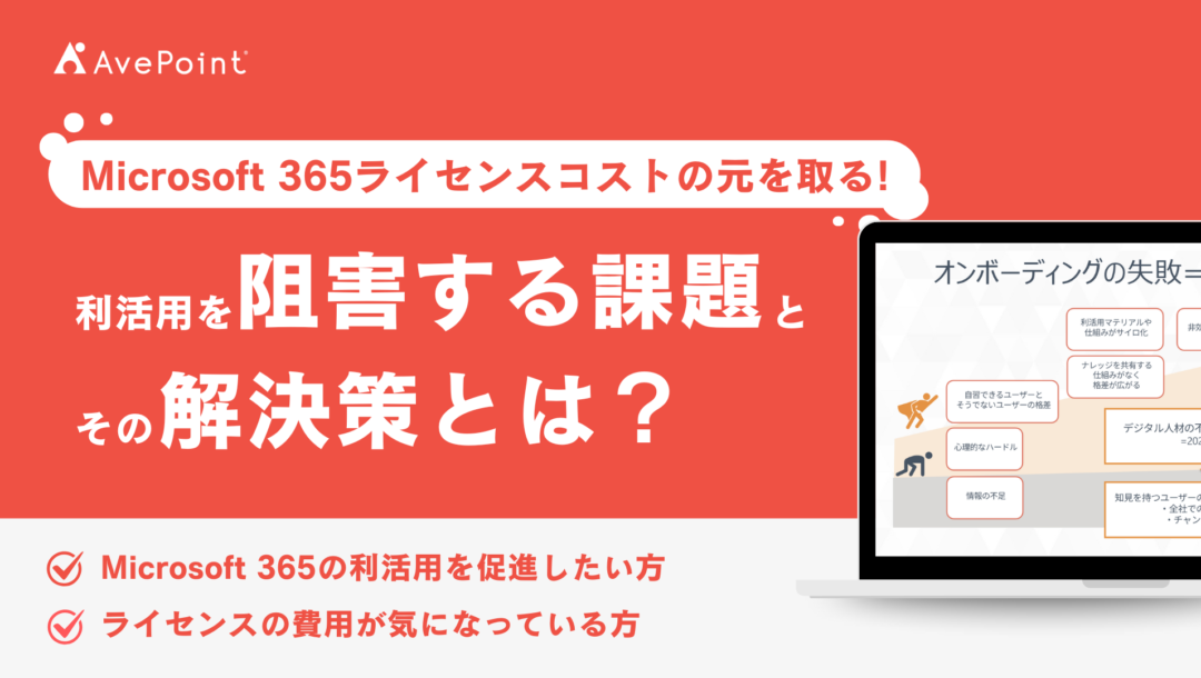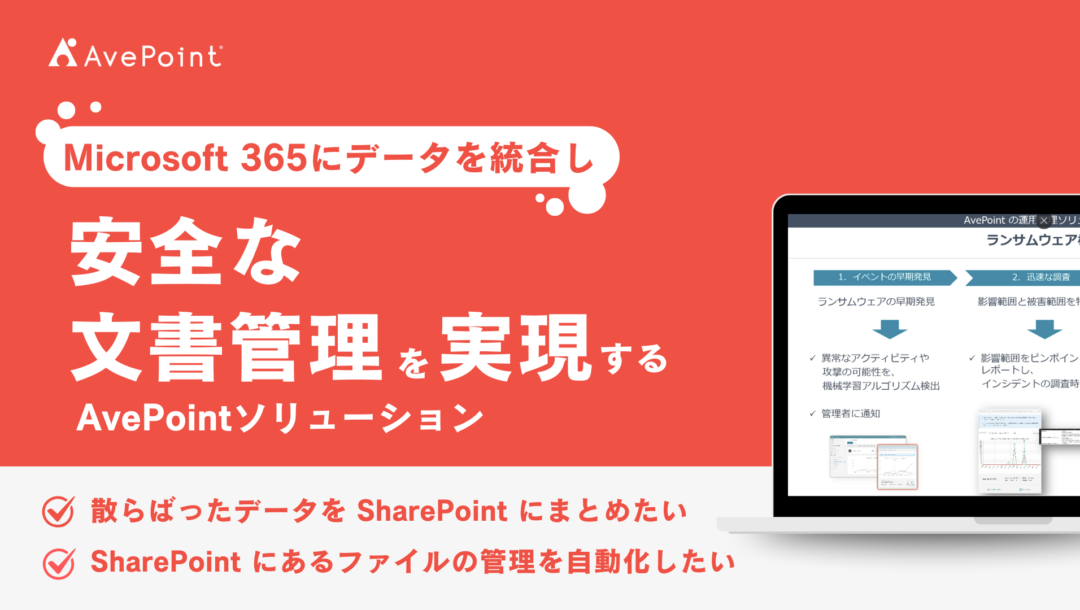 アーカイブ視聴登録 Microsoft 365にデータを統合し、安全な文書管理を実現するAvePointソリューション テーマ SharePoint 対象者 Microsoft 365 の運用を自動化したい