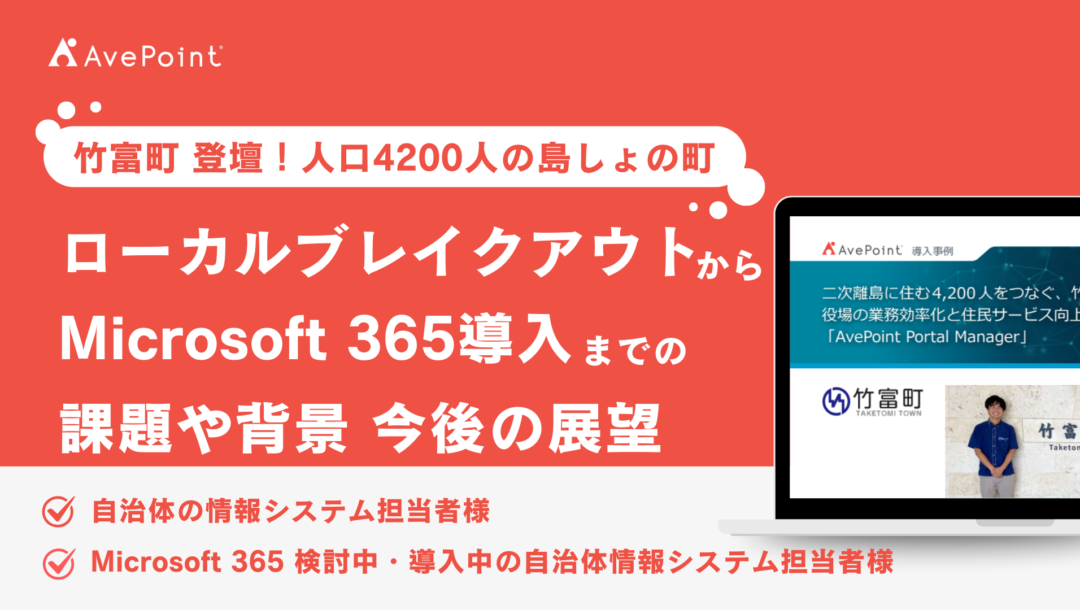 そこで本ウェビナーでは、DXの取り組みの一環としてMicrosoft 365を導入している竹富町様をゲストにお呼びし、ローカルブレイクアウトからMicrosoft 365利用に至るまでの課題や解決策、活用方法などをお話しいただきます。